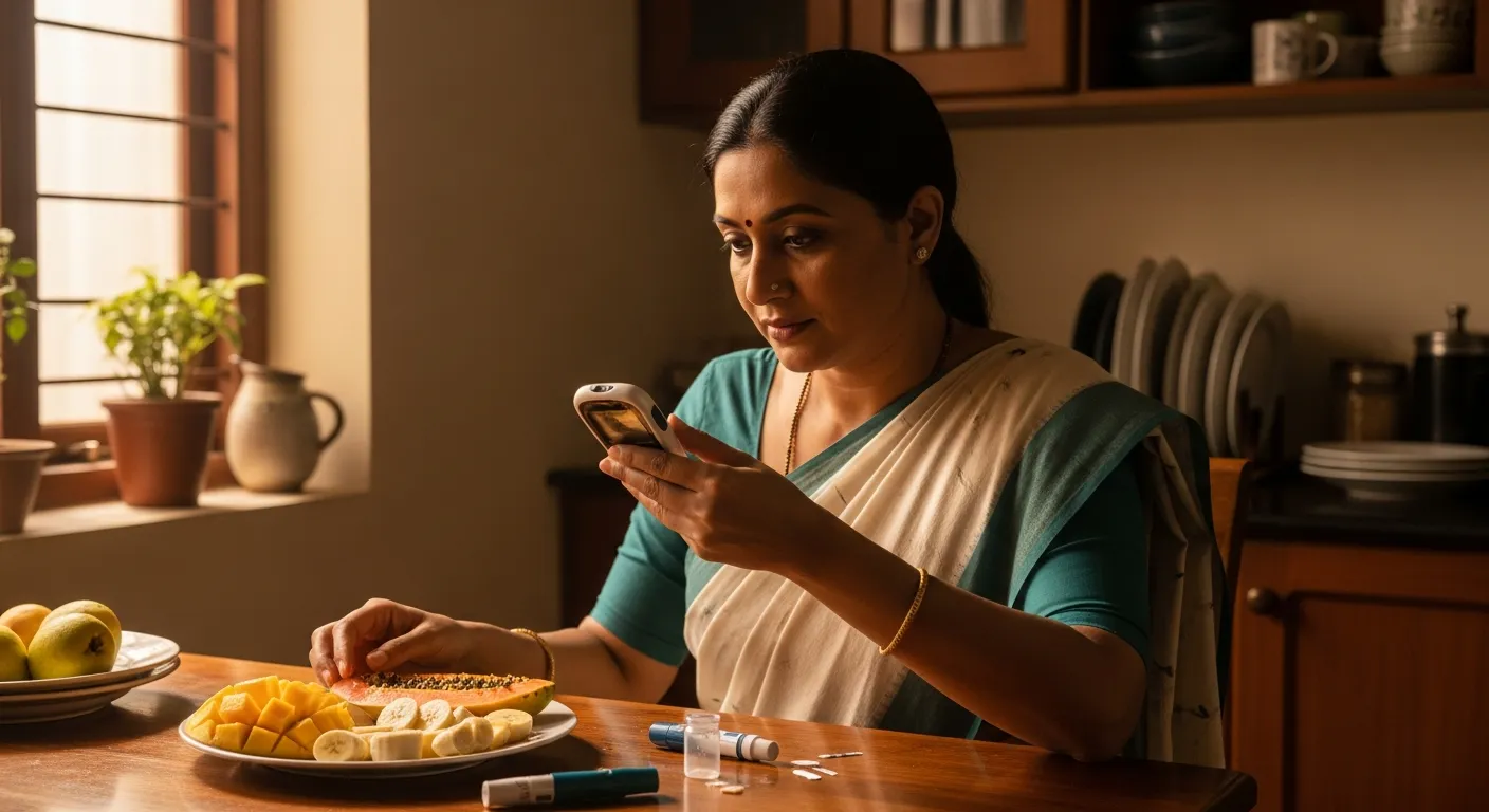 रविवार की सुबह थी। 55 वर्षीय मीना देवी हाथ में ब्लड शुगर मशीन लिए बैठी थीं। चेहरा हल्का उदास — क्योंकि उन्होंने पिछले दिन आधा आम खा लिया था। मन में सवाल – “क्या मैंने कुछ गलत कर दिया?” ऐसी कहानी सिर्फ मीना देवी की नहीं है, बल्कि हर उस भारतीय की है जिसे डॉक्टर ने कहा हो – “अब शुगर कंट्रोल में रखनी है।”